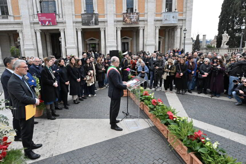La città di Roma ha commemorato per il secondo anno consecutivo l’eccidio delle Fosse Ardeatine con una iniziativa aperta e pubblica in piazza del Campidoglio. Un lungo striscione con i nomi delle 335 vittime è stato srotolato sulla rampa che porta da piazza Venezia alla statua del Marco Aurelio.